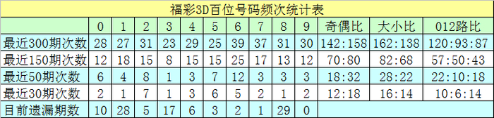 百位分析:最近50期发扬较热的号码有:6出现12次,2出现8次,5出现7次;发扬较冷的号码有:3出现1次,4、7、8、9出现3次。出号奇偶比为18:32,012路比为22:10:18。本期该位绝杀两码3、8,参考号码0、4、7,精选一码0。