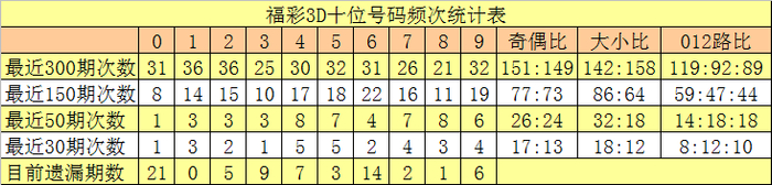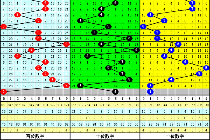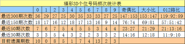 个位分析:近50期该位发扬活跃的号码有:0、2出现7期,1出现6期;发扬较冷的号码有:7开出3期,4、8、9开出4期。该位号码奇偶比为23:27,大小比为21:29。本期该位杀两码4、5,防号码0、1、3出现,精选一码1。